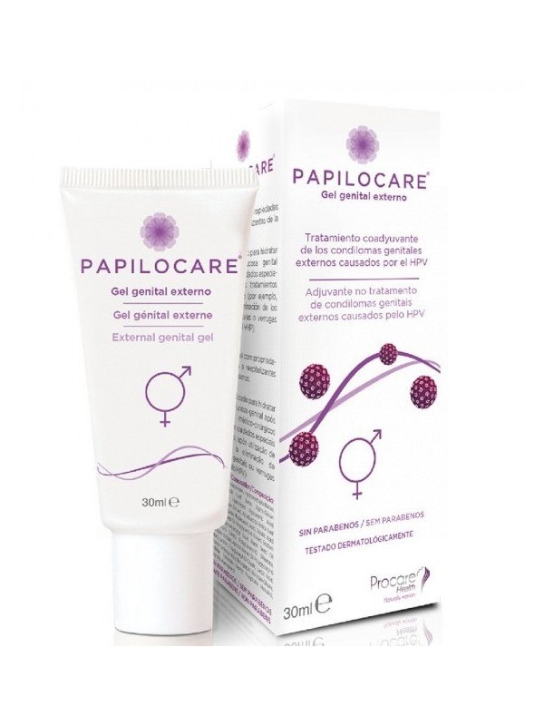 PAPILOCARE® GEL GENITAL EXTERNO ES UN GEL NO HORMONAL CON PROPIEDADES HIDRATANTES Y REEPITELIZANTES DE LA ZONA GENITAL EXTERNA INDICADO PARA TRATAR LAS VERRUGAS CAUSADAS POR EL VIRUS DEL PAPILOMA HUMANO (VPH) EN MUJERES Y HOMBRESESTÁ ESPECÍFICAMENTE DISEÑADO Y CUENTA CON UNA FÓRMULA PATENTADA A BASE DE SIETE INGREDIENTES DE ORIGEN NATURAL QUE HACEN DE ÉL UN TRATAMIENTO MUY SEGURO Y TOLERABLE. ¿CUÁNDO DEBO UTILIZARLO?SU USO ES ACONSEJABLE SIEMPRE QUE SEAS MAYOR DE 18 AÑOS, PRESENTES CONDILOMAS O VERRUGAS GENITALES OCASIONADAS POR EL VPH Y TE HAYAS SOMETIDO A TRATAMIENTOS MÉDICO-QUIRÚRGICOS PARA SU ELIMINACIÓN, COMO EL LÁSER.EN ESTE CASO, PAPILOCARE® GEL GENITAL EXTERNO TE AYUDARÁ A TRATAR Y REPARAR LA MUCOSA GENITAL, ADEMÁS DE EVITAR LAS RECIDIVAS.UTILÍZALO SIEMPRE BAJO SUPERVISIÓN MÉDICA. ¿CÓMO UTILIZARLO?APLICAR UNA PEQUEÑA CANTIDAD DE PRODUCTO CON LA YEMA DE LOS DEDOS EN LA ZONA GENITAL EXTERNASE RECOMIENDAN DOS APLICACIONES AL DÍA, SIENDO ACONSEJABLE QUE UNA DE ELLAS SEA POR LA NOCHE, ANTES DE ACOSTARSESE PUEDE USAR DE MANERA CONJUNTA CON PAPILOCARE® GEL VAGINAL