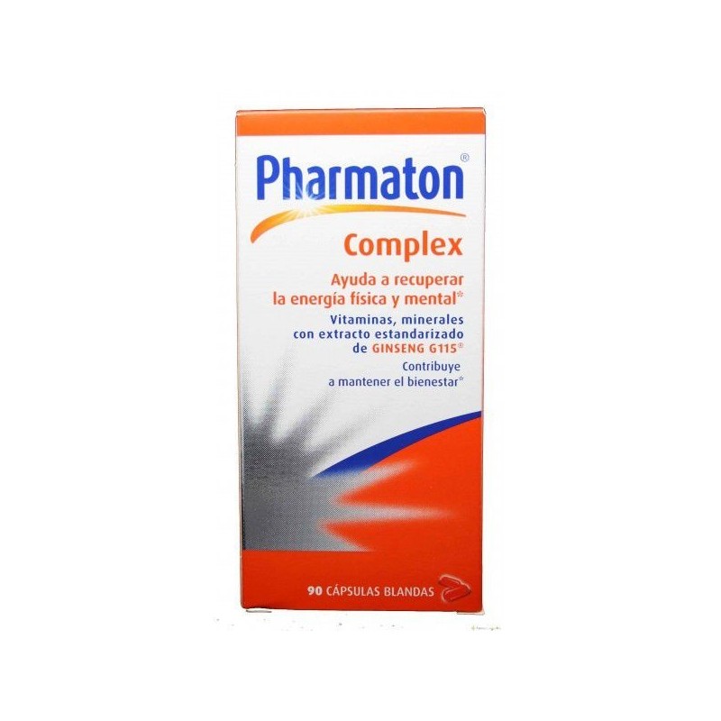 PHARMATON COMPLEX ES UN COMPLEJO MULTI-VITAMÍNICO PARA AYUDAR A SUPERAR EL CANSANCIO EN LAS ÉPOCAS DE MÁS ESTRÉS O EN MOMENTOS DE ACTIVIDAD FÍSICA, CUANDO SE DA UN DECAIMIENTO DE LAS FUERZAS, PHARMATON APORTA LA ENERGÍA Y VITALIDAD DEL ORGANISMO.PHARMATON COMPLEX CONTIENE DIFERENTES OLIGOELEMENTOS Y MINERALES ESENCIALES PARA LA SALUD DEL CUERPO. PHARMATON COMPLEX:- ELIMINA EL CANSANCIO.- MEJORAR LA SENSACIÓN DE DEBILIDAD.- SUPERAR EL AGOTAMIENTO FÍSICO EN ÉPOCAS DE ESTRÉS.- TRATAR LA APATÍA MENTAL PRODUCIDA POR CARENCIAS DE MINERALES O VITAMINAS.